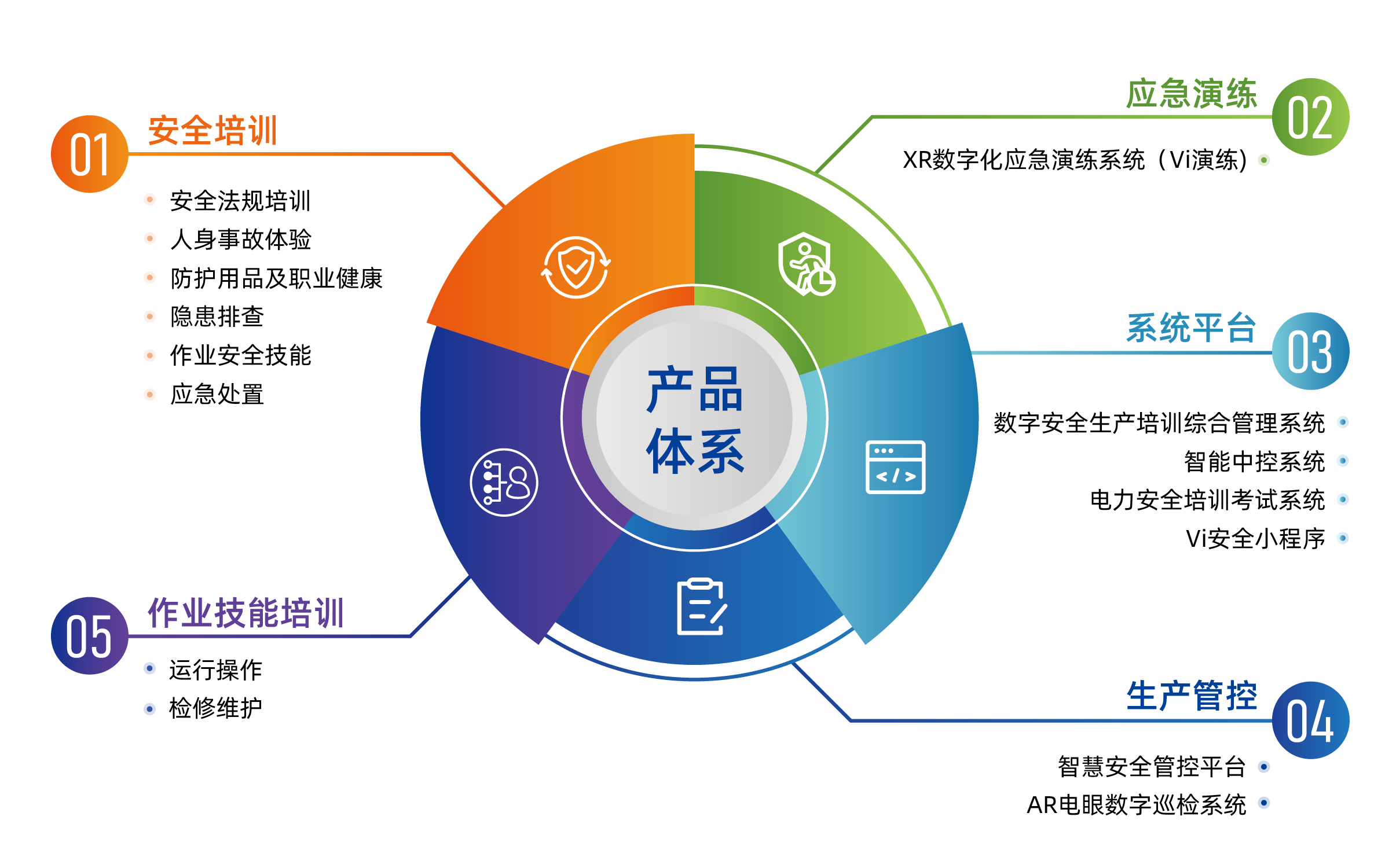 幻威动力始终坚持以用户需求为核心、以解决行业痛点为导向,多年耕耘形成了以XR体验为核心、PC/APP/小程序/智能端为辅助的产品体系。开发了含安全警示教育、安全工器具使用、应急演练、现场急救、风险辨识与隐患排查、作业安全技能、职业技能、安全生产管控应用与安全培训管理等多类型系列产品300余项,以现代化的技能竞赛技术支持、应急预案演练服务和安全生产管控应用有效填补了传统安全培训与管控的空白,帮助行业培养出更专业、更具备应对复杂环境能力的人才,从而全面提升企业的安全生产水平和突发事件应对能力。