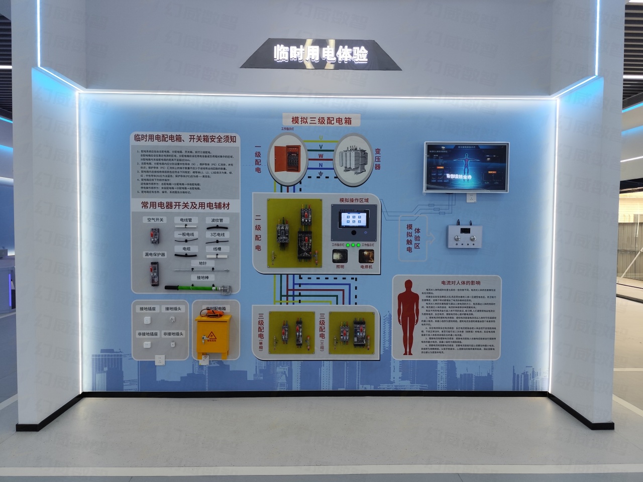 通过模拟配电箱与线路状态,让学员直观了解用电规范、接线原则与设备选型要求。有效强化安全用电意识,从源头上减少因用电不当引发的安全隐患。